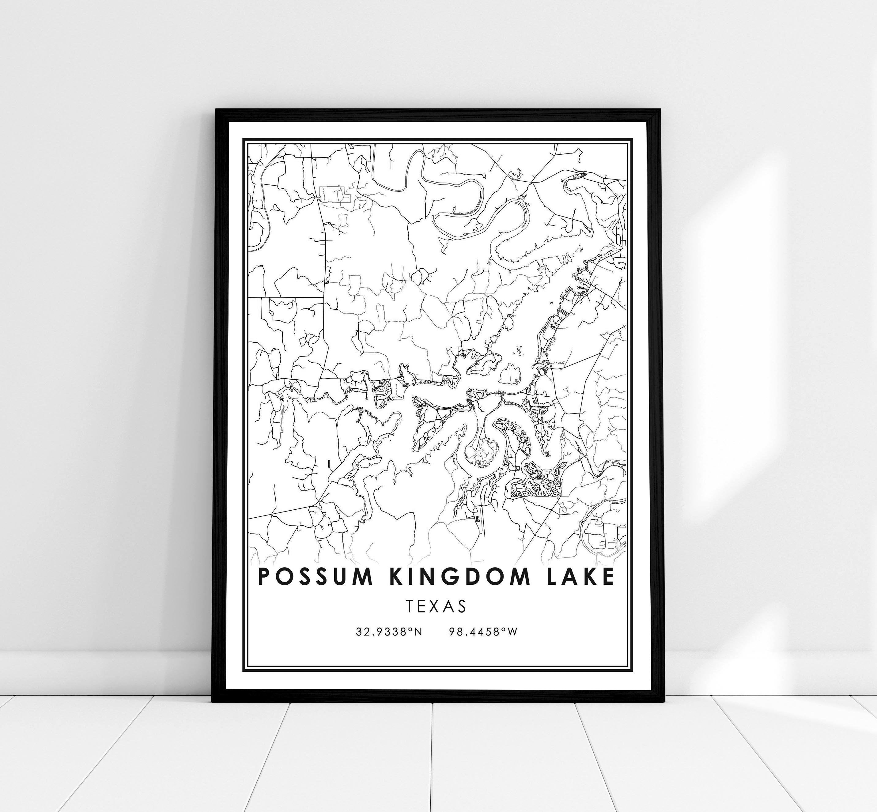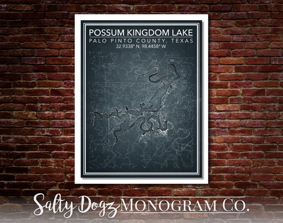 Possum Kingdom Lake Map Print Poster Canvas Texas Map Print Etsy
